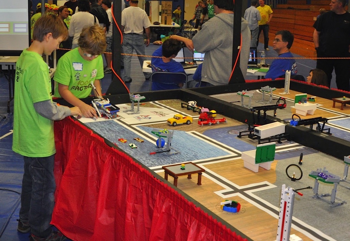 8-Year-Old me (left) setting up our robot at the NH FIRST LEGO Robotics competition, my first introduction to engineering.